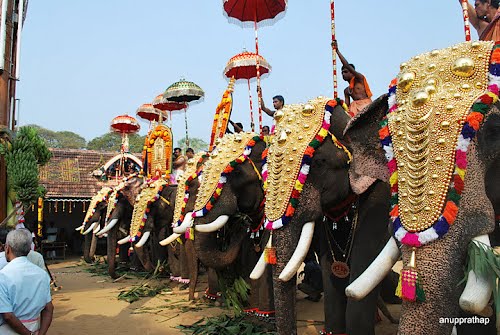 Makarachuva. Decorated elephant procession with panchavadyam. Kshetram Keeper visits homes of devotees to accept offerings to Goddess Perayil Bhagavathy.